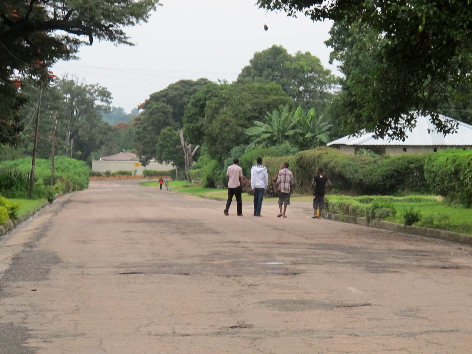 This is the first roundabout from this approach into town. Below is pictured the main road, lined with trees. What you can't see are the hacked off branches. The trees were trimmed, using machetes, branches not undercut, so as they peeled away, they also peeled away substantial amounts of bark. Heaven help anyone driving by, or walking while the trimming is taking place!