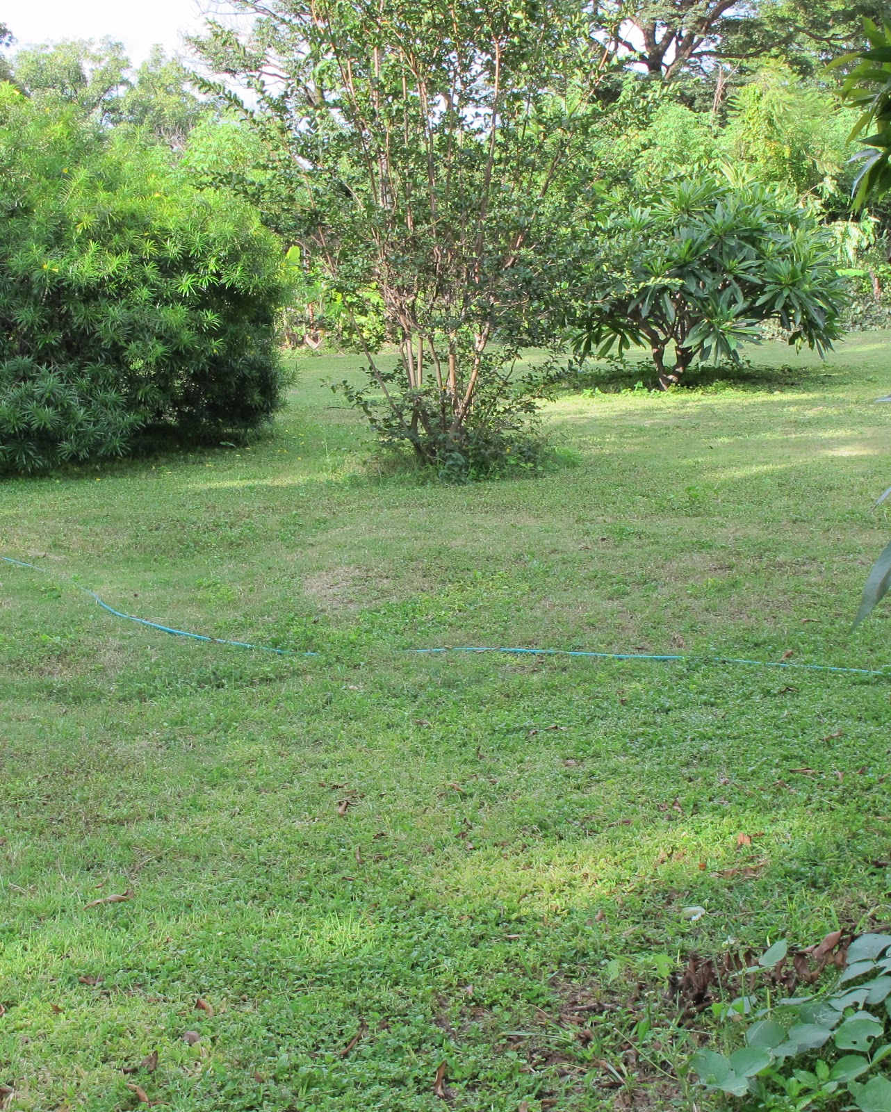 Here is the hosepipe trailing out of the pool and down to the back of the yard: